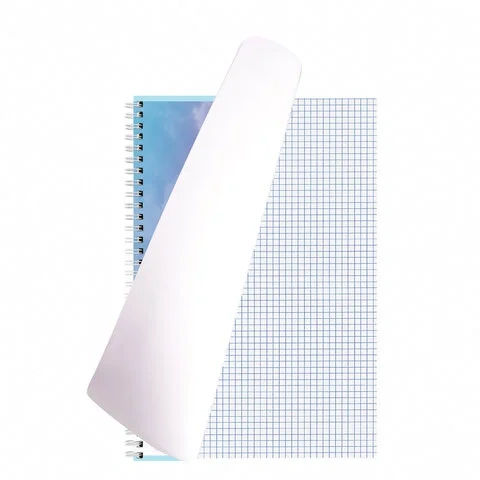 Внутренний блок содержит 80 листов офсетной бумаги плотностью 65 г/м2. Обложка изготовлена из мелованного картона и покрыта глянцевым лаком. Линовка - клетка. Евроспираль надежно скрепляет листы между собой. Белизна - 92%. Формат А4.