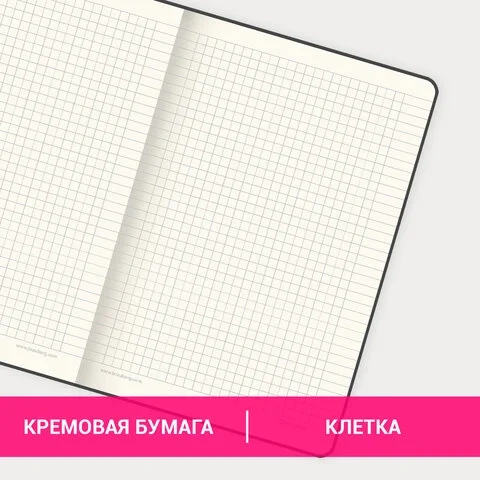 Тетрадь Brauberg Income черная, A5, 128 листов, в клетку, на сшивке, искусственная кожа