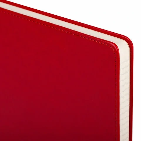 Мягкая интегральная обложка стилизована под кожу. Имеет закругленные уголки. Подходит для горячего тиснения. 128 листов позволят зафиксировать большой объем информации. Линовка блока в клетку дает возможность аккуратно заполнить цифровые значения, а также нанести чертежные зарисовки. Внутренний блок выполнен из офсета кремого цвета плотностью 70 г/м2 и крепится к обложке с помощью книжного переплета. Дополнением является закладка-ляссе, с помощью которой при необходимости можно быстро открыть нужную страницу. Формат блокнота А4 (200х252 мм) позволит владельцу поместить его в кейс или сумку габаритов.