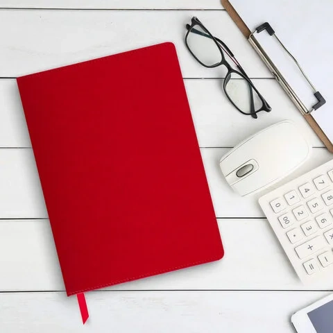 Тетрадь Brauberg Income красная, A4, 128 листов, в клетку, на сшивке, искусственная кожа