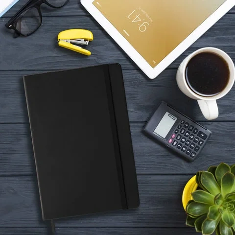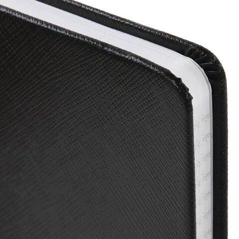 Твердая обложка стилизована под кожу. Имеет закругленные уголки. Подходит для тиснения только фольгой. 96 листов позволят зафиксировать большой объем информации. Линовка блока в клетку дает возможность аккуратно заполнить цифровые значения, а также нанести чертежные зарисовки. Внутренний блок выполнен из офсета белого цвета плотностью 70 г/м2 и крепится к обложке с помощью книжного переплета. Дополнением является закладка-ляссе, с помощью которой при необходимости можно быстро открыть нужную страницу. Формат блокнота А5 (148х218 мм) позволит владельцу поместить его в кейс или сумку малых габаритов.