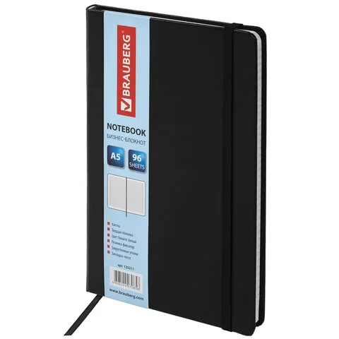 Тетрадь Brauberg Select черная, A5, 96 листов, в клетку, на сшивке, искусственная кожа