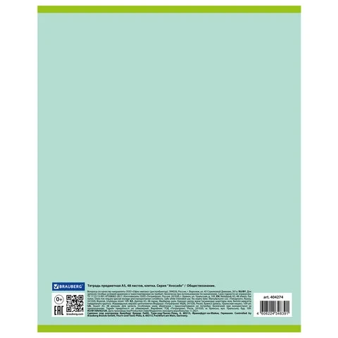 Тетрадь предметная 'AVOCADO' 48 л., глянцевый лак, ОБЩЕСТВОЗНАНИЕ, клетка, BRAUBERG, 404274