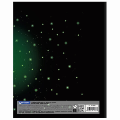 Тетрадь предметная DARK 48 листов, глянцевый лак, ИНФОРМАТИКА, клетка, подсказ, BRAUBERG, 403972