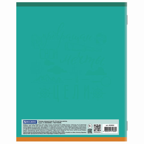 Тетрадь предметная К ЗНАНИЯМ 36 л., обложка мелованная бумага, ГЕОГРАФИЯ, клетка, BRAUBERG, 403932
