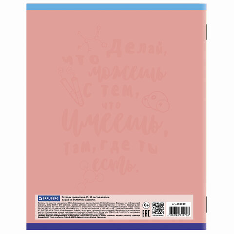 Тетрадь предметная К ЗНАНИЯМ 36 л., обложка мелованная бумага, ХИМИЯ, клетка, BRAUBERG, 403939