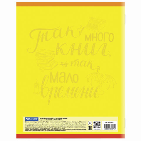 Тетрадь предметная К ЗНАНИЯМ 36 л., обложка мелованная бумага, ЛИТЕРАТУРА, линия, BRAUBERG, 403936