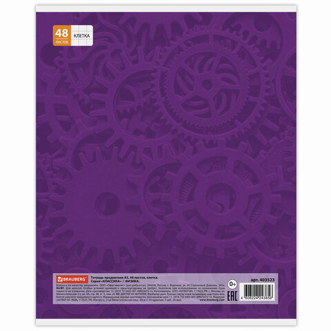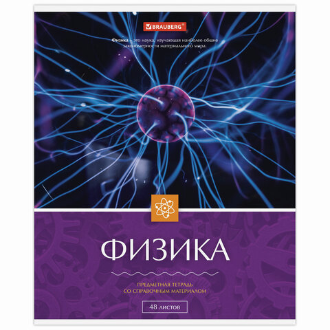 Тетрадь предметная 'КЛАССИКА' 48 л., обложка картон, ФИЗИКА, клетка, подсказ, BRAUBERG, 403523
