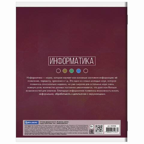 Тетрадь предметная КЛАССИКА XXI 48 л., обложка картон, ИНФОРМАТИКА, клетка, подсказ, BRAUBERG, 40394
