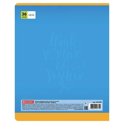 Тетрадь предметная 'ПАЛИТРА ЗНАНИЙ' 36 л., обложка мелованная бумага, ФИЗИКА, клетка, BRAUBERG, 4035