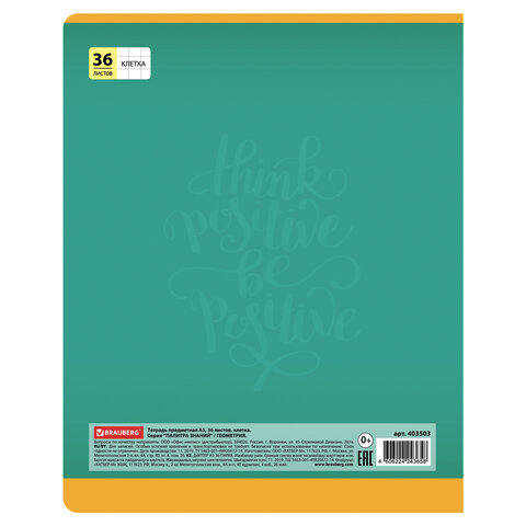 Тетрадь предметная 'ПАЛИТРА ЗНАНИЙ' 36 л., обложка мелованная бумага, ГЕОМЕТРИЯ, клетка, BRAUBERG, 4