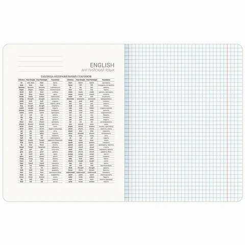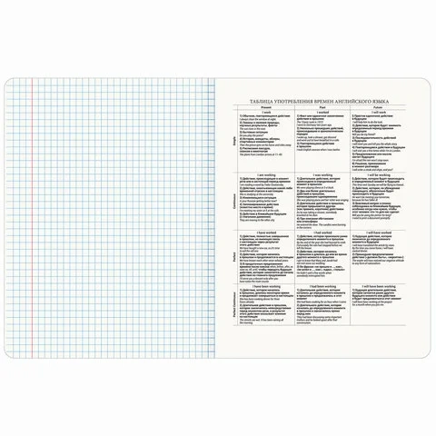 Тетрадь 'Английский язык' формата А5 (165х202 мм) содержит 48 листов, изготовленных из высококачественной офсетной бумаги плотностью 65 г/м2 и белизной 100%. Листы соединены скобами. Линовка блока - в клетку, поля красные. Обложка выполнена из мелованного картона плотностью 190 г/м2 в тематике соответствующего предмета. Ламинация SoftTouch с тиснением фольгой обеспечивает обложке мягкий, бархатистый тактильный эффект. Углы тетради скруглены. В справочном материале собраны основные подсказки по школьному предмету для учащихся.