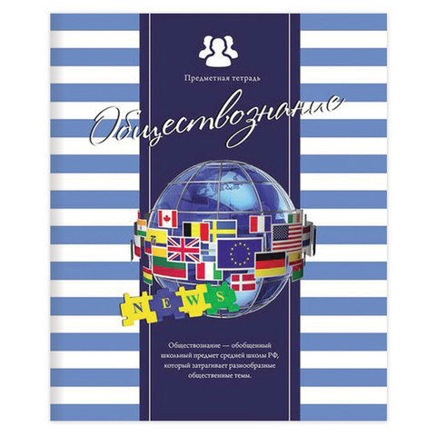 Тетрадь предметная ПОЛОСАТЫЙ СТИЛЬ 48 л., обложка картон, офсет №2, ОБЩЕСТВОЗНАНИЕ, клетка, 48-2590