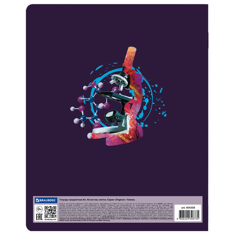 Тетрадь предметная со справочным материалом ORIGINAL 48 л., TWIN лак, ХИМИЯ, клетка, BRAUBERG, 40430