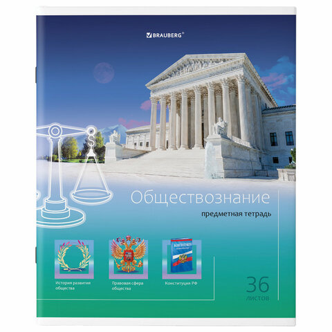 Тетрадь предметная 'ЯРКАЯ', 36 л., обложка мелованная бумага, ОБЩЕСТВОЗНАНИЕ, клетка, BRAUBERG, 4042