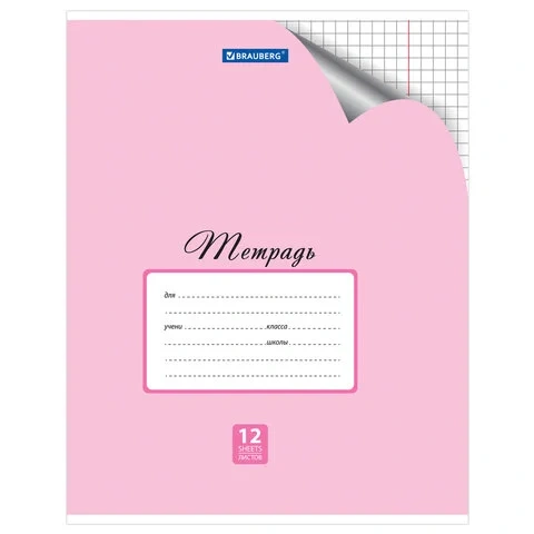 Тетрадь школьная Brauberg Эко Пастельная с уголком, А5, 12 листов, в клетку, на скрепке, бумага