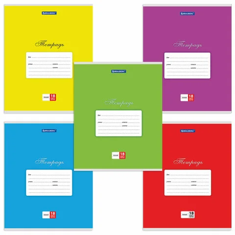 Тетрадь школьная Brauberg Классика ассорти, А5, 18 листов, в линейку, на скрепке, мелованный картон