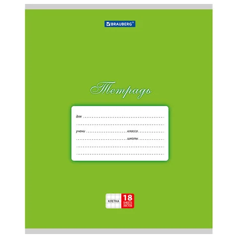 Тетрадь школьная Brauberg Классика зеленая, А5, 18 листов, в клетку, на скрепке, мелованный картон