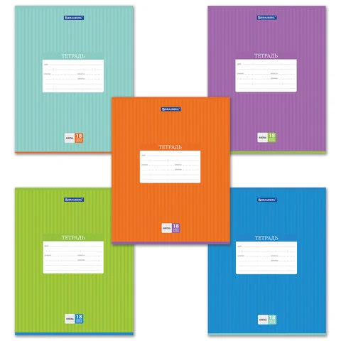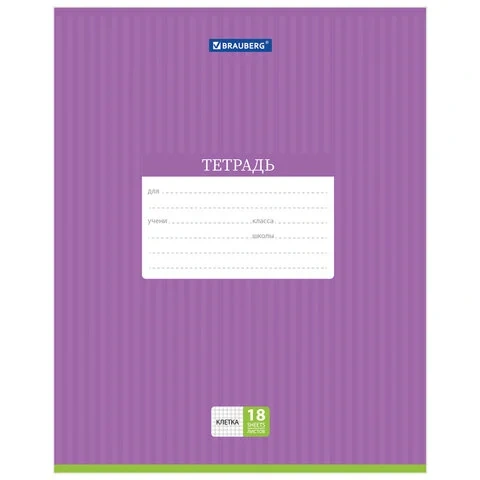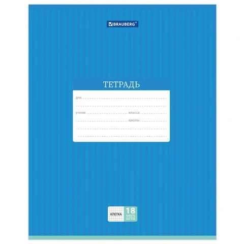 Тетрадь школьная Brauberg Полоски однотонные, А5, 18 листов, в клетку, на скрепке, мелованный картон