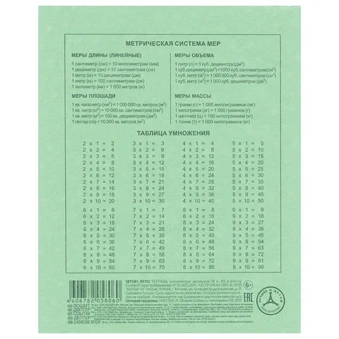 Тетради 12-24 листов Hatber зеленая, А5, 18 листов, в клетку, на скрепке, бумага