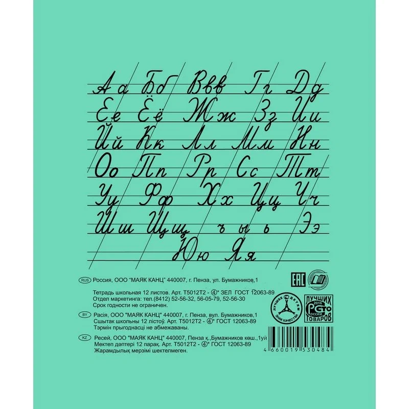 Тетрадь школьная зеленая Маяк формата A5 из 12 листов в косую линейку. Обложка бумага (плотность 80 г/кв.м). Зеленая обложка у тетрадей, подходит для контрольных и самостоятельных работ, а также для черновика. Внутренний блок бумага