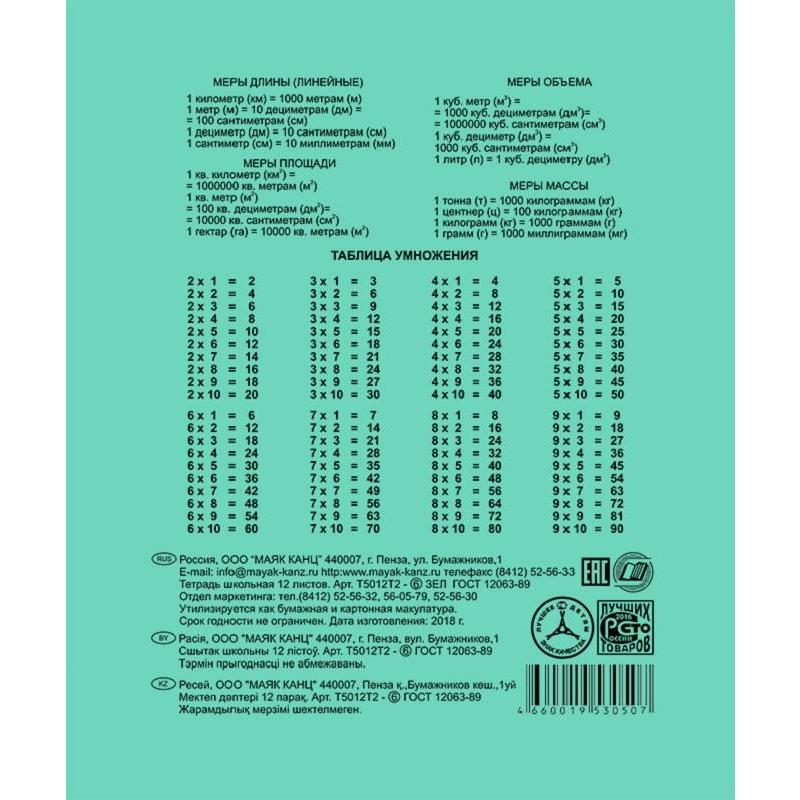 Тетрадь школьная зеленая Маяк Канц формата A5. Размер тетради: 170?203 мм. Тетрадь содержит 12 листов в крупную клетку с полями. Обложка — бумага, плотность 80 г/кв.м. Внутренний блок на скрепках — бумага писчая-офсет плотностью 60 г/кв.м, белизна — 100%. Зеленая обложка у тетрадей, подходит для контрольных и самостоятельных работ, а также для черновика. Тетради поставляются по 10 штук в упаковке.