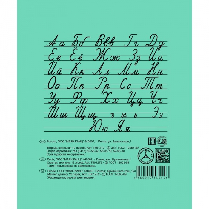 Тетрадь школьная зеленая Маяк формата A5 из 12 листов в линейку. Обложка бумага (плотность 80 г/кв.м). Зеленая обложка у тетрадей, подходит для контрольных и самостоятельных работ, а также для черновика. Внутренний блок обложечная тетрадная бумага 60 г/кв.м, белизна 100%. Поля по