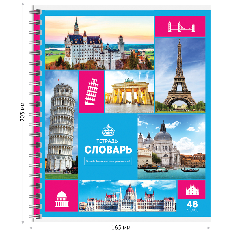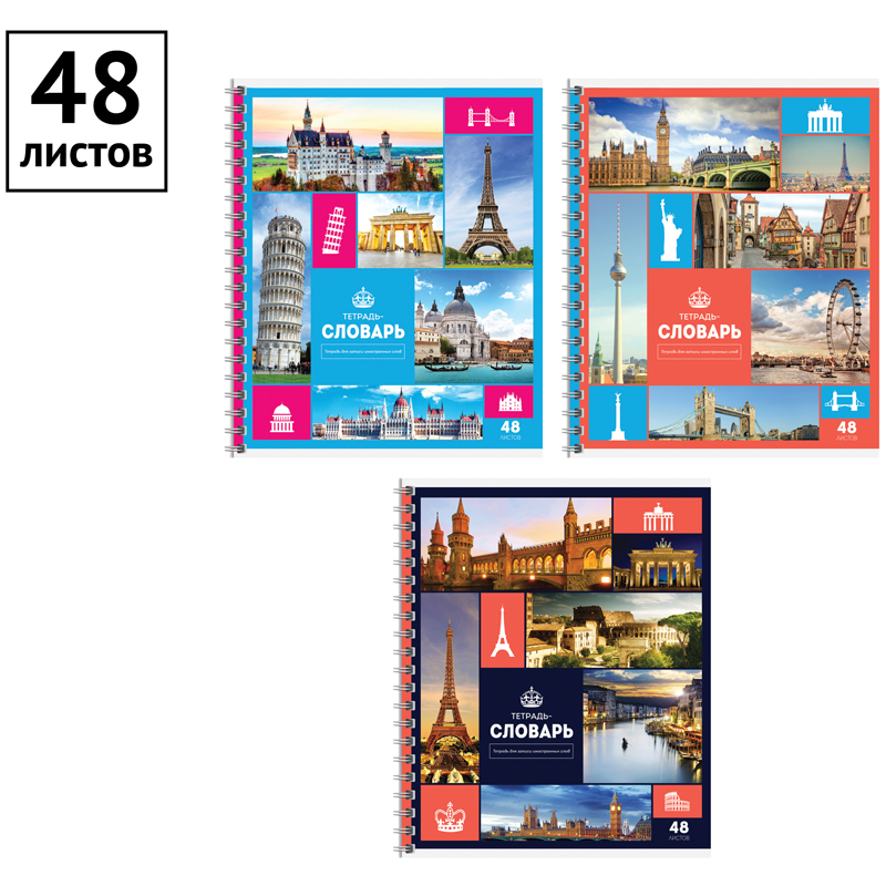 Тетрадь-словарик 48л., А5 для записи иностранных слов на гребне ArtSpace 'Страны'