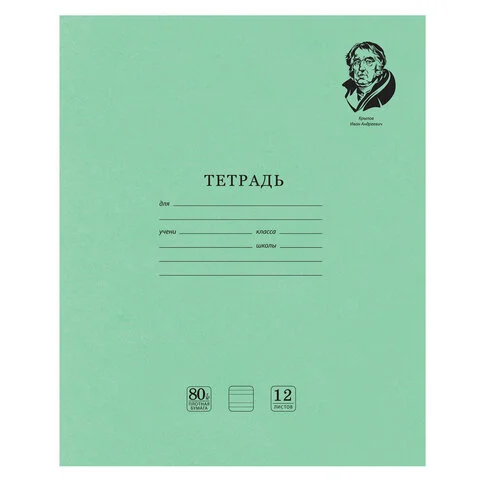 Тетрадь ВЕЛИКИЕ ИМЕНА. Крылов И.А., 12 л. узкая линия, плотная бумага 80 г/м2, обложка тонированный