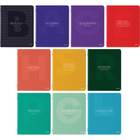 Предметные тетради BRAUBERG из серии 'COLOR' со справочным материалом предназначены для учащихся средних и старших классов. Покрытие матовой пленкой с выборочным глянцевым лаком обеспечивает обложке неповторимый визуальный эффект. В комплекте 10 тетрадей: Обществознание, Алгебра, Английский язык, Биология, География, Геометрия, История, Физика, Литература (в линию), Русский язык (в линию). Внутренний блок повышенной плотности 70 г/м2. Белая бумага 100% белизны с красными полями. 48 листов. Формат А5. На скрепке. Скругленные углы. Размеры- 205 х 165 мм. Артикул производителя: 404029.