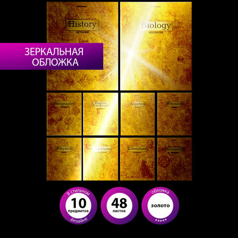 Тетради предметные, КОМПЛЕКТ 10 ПРЕДМЕТОВ, 'GOLD', 48 л., С ЗОЛОТОЙ ОБЛОЖКОЙ, BRAUBERG, 404033