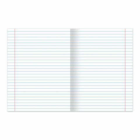 Внутренний блок тетради из офсетной бумаги плотностью 60 г/м2, соединенный двумя металлическими скрепками, состоит из 48 листов белой бумаги. Линовка в клетку и линию дополнена красными полями. Стандартный формат А5. Обложка из мелованного картона. Справочный материал внутри тетради.