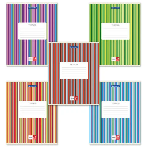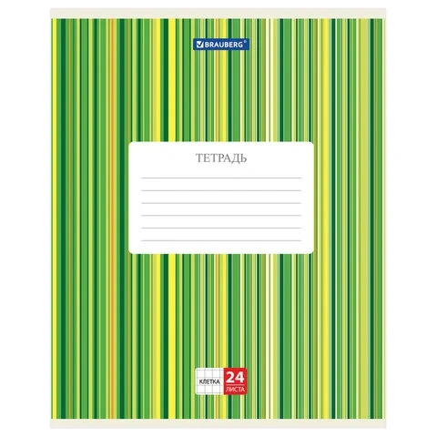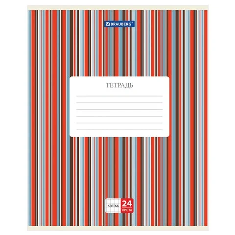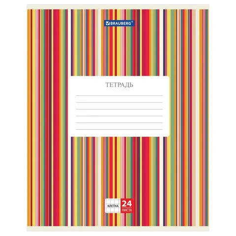 Тетрадь школьная Brauberg Полоски, А5, 24 листа, в клетку, на скрепке, мелованный картон