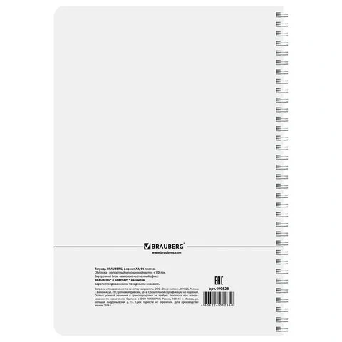 Тетрадь Brauberg One Color, A4, 96 листов, в клетку, на спирали, мелованный картон/ лак