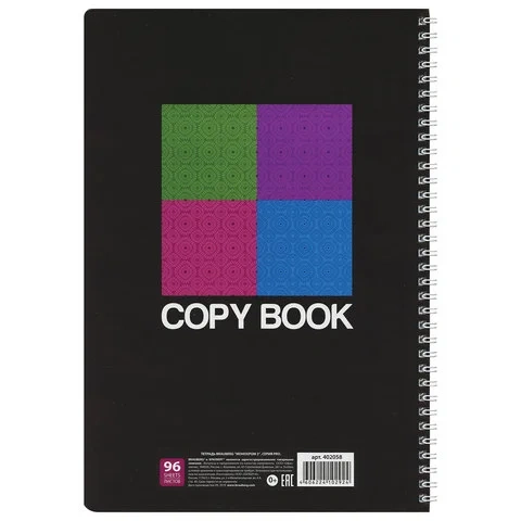 Тетрадь Brauberg Монохром2, A4, 96 листов, в клетку, на спирали, мелованный картон/ лак