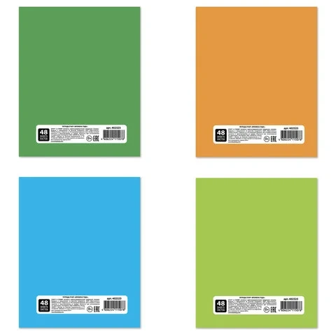 Тетрадь А5, 48 л., HATBER-ECO скоба, офсет №2 ЭКОНОМ, клетка, обложка мелованная бумага, 'Зеленая',