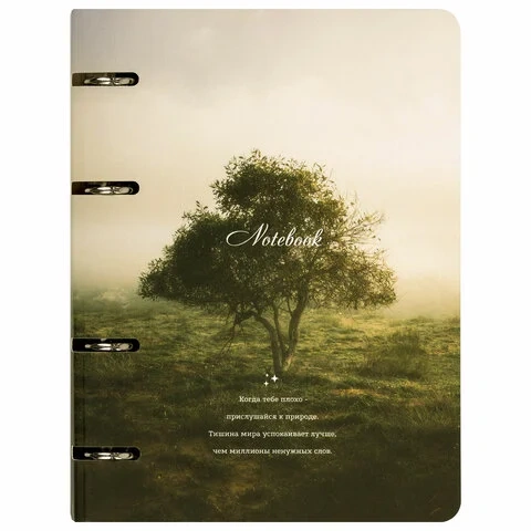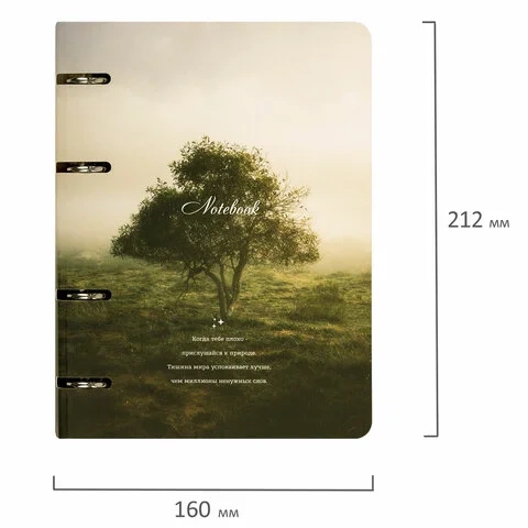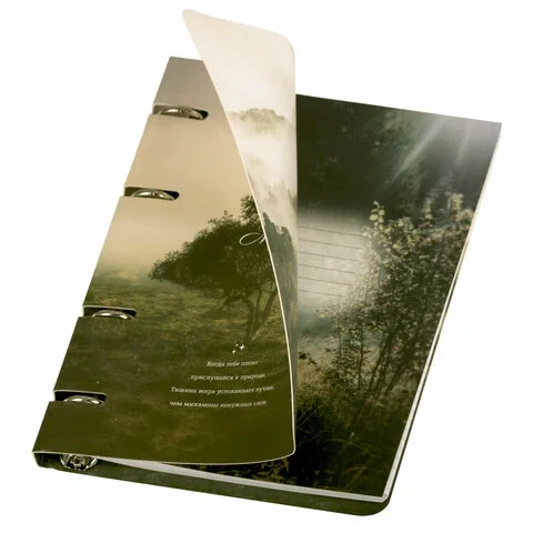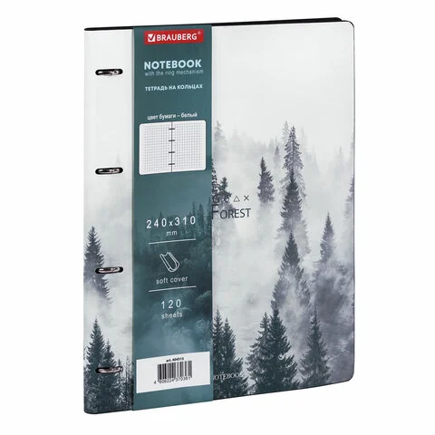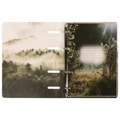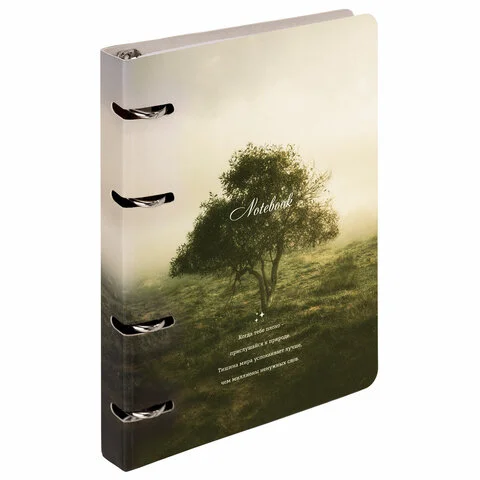 Тетрадь на кольцах А5 160х212 мм, 120 листов, картон, матовая ламинация, клетка, BRAUBERG, 'Nature',