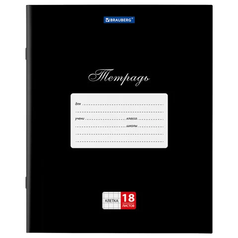 Тетрадь 18 л. BRAUBERG 'КЛАССИКА', клетка, обложка картон, ЧЕРНАЯ, 106476