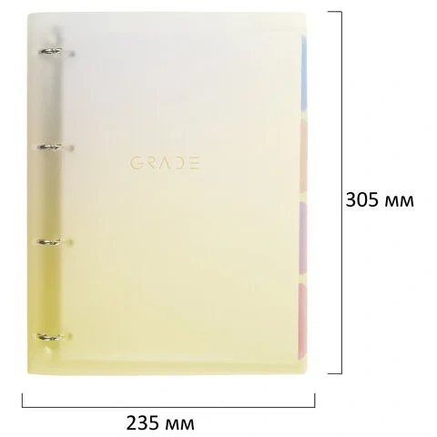 Тетрадь на кольцах БОЛЬШАЯ 305х235 мм А4, 120 л., пластик, с разделителями, BRAUBERG, Желтый, 404624