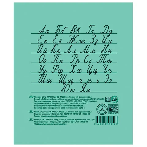 Тетрадь ЗЕЛЁНАЯ обложка 18 листов 'Маяк', офсет, линия с полями, Т5018Т2 1Г