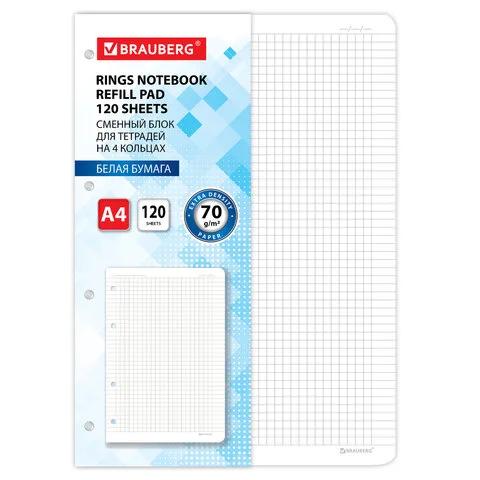 Сменный блок для тетради на кольцах Brauberg А4, 120 листов, белый