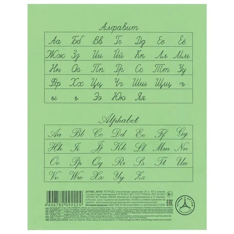 Тетрадь Hatber зеленая, А5, 24 листа, в линейку, на скрепке, бумага
