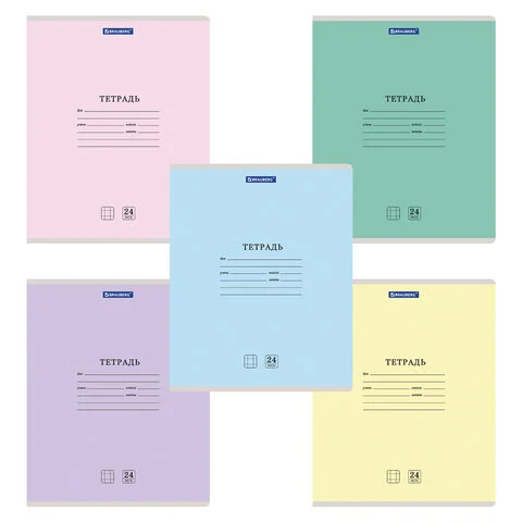 Тетрадь 24 л. BRAUBERG КЛАССИКА NEW клетка, обложка картон, АССОРТИ (5 видов), 105702