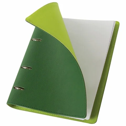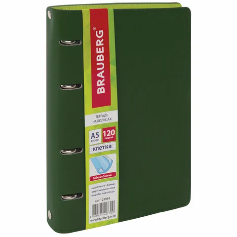 Тетрадь на кольцах А5 (180х220 мм), 120 л., под фактурную кожу, BRAUBERG 'Joy', зелёный/светло-зелён