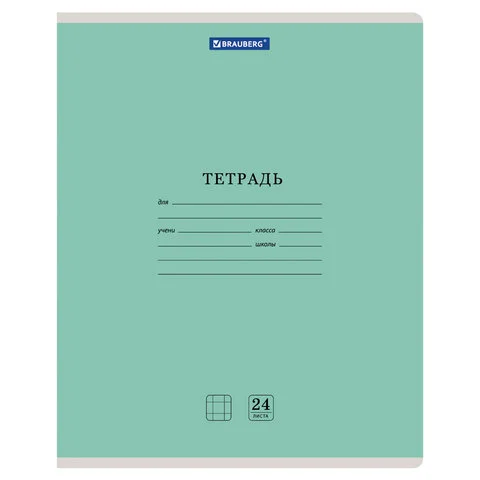 Тетрадь 24 л. BRAUBERG КЛАССИКА NEW клетка, обложка картон, ЗЕЛЕНАЯ, 105703