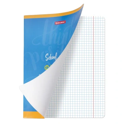 Тетрадь бумвинил, А5, 48 л., скоба, офсет №1, клетка, с полями, STAFF, СИНИЙ, 403414