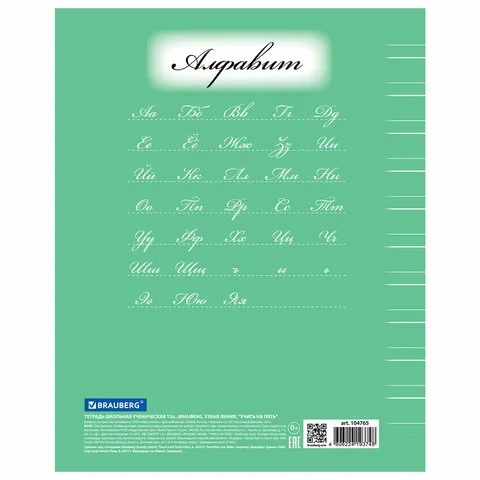 Тетрадь 12 л. BRAUBERG ЭКО '5-КА', линия, обложка плотная мелованная бумага, ЗЕЛЕНАЯ, 104763