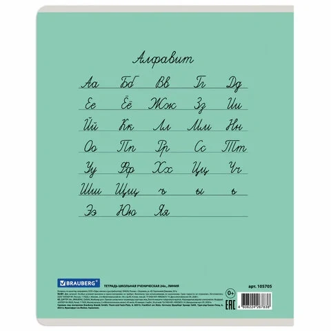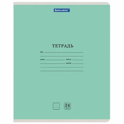 Тетрадь 24 л. BRAUBERG ЭКО '5-КА', линия, обложка плотная мелованная бумага, ЗЕЛЕНАЯ, 403004