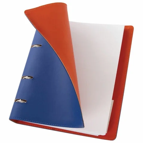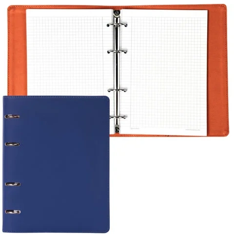 Тетрадь на кольцах А5 (180х220мм), 120 листов, под фактурную кожу, BRAUBERG 'Fusion', синий/оранжевы