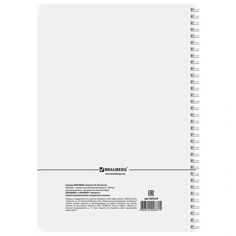 Тетрадь Brauberg Contract, А4, 96 листов, в клетку, на спирали, мелованный картон/ лак